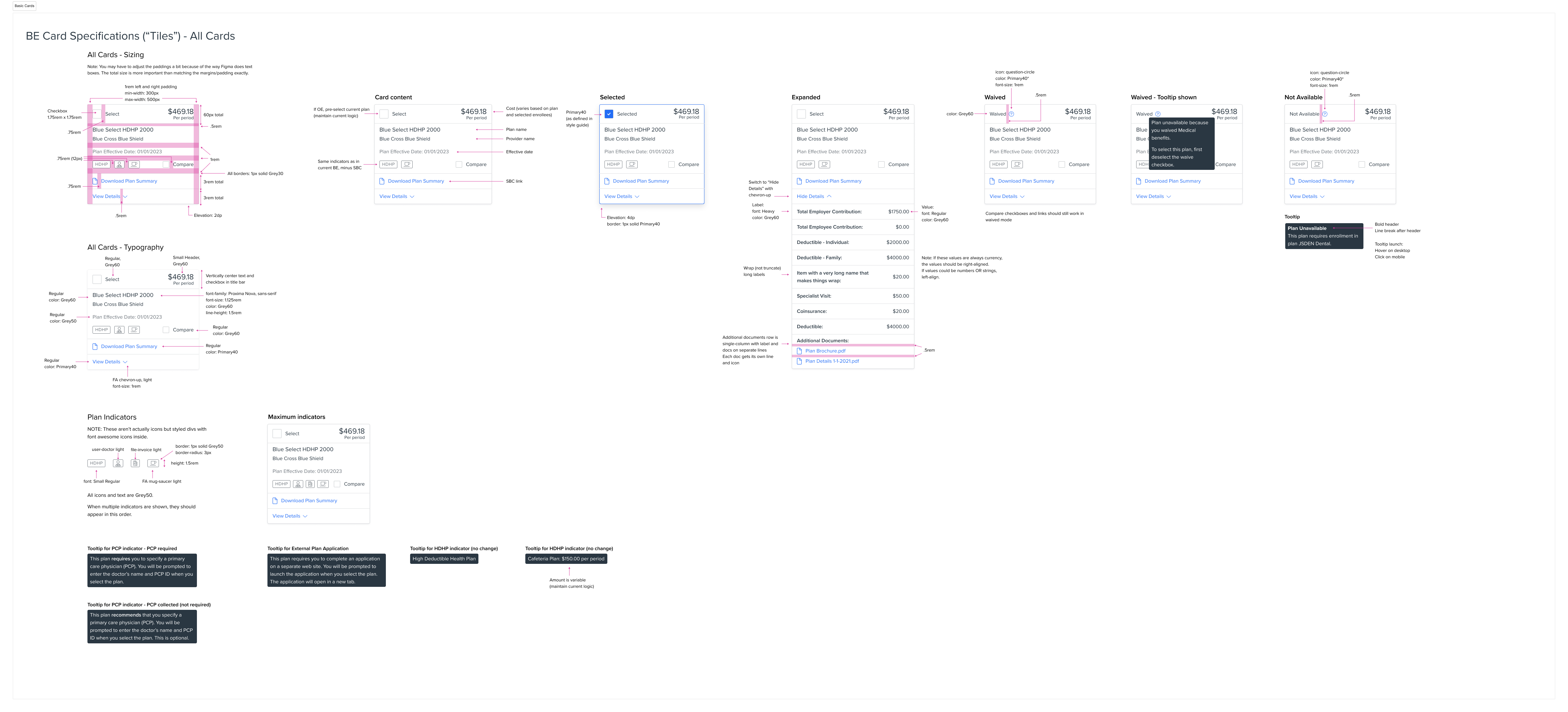Benefit plans are extensively configurable and support localization in English and Spanish, so the design had to support different numbers of plans, amounts of text, and plan details.