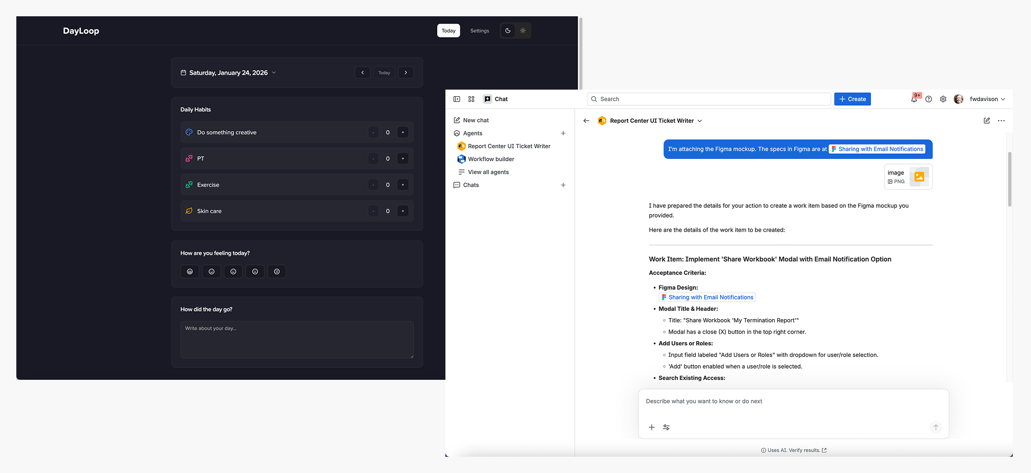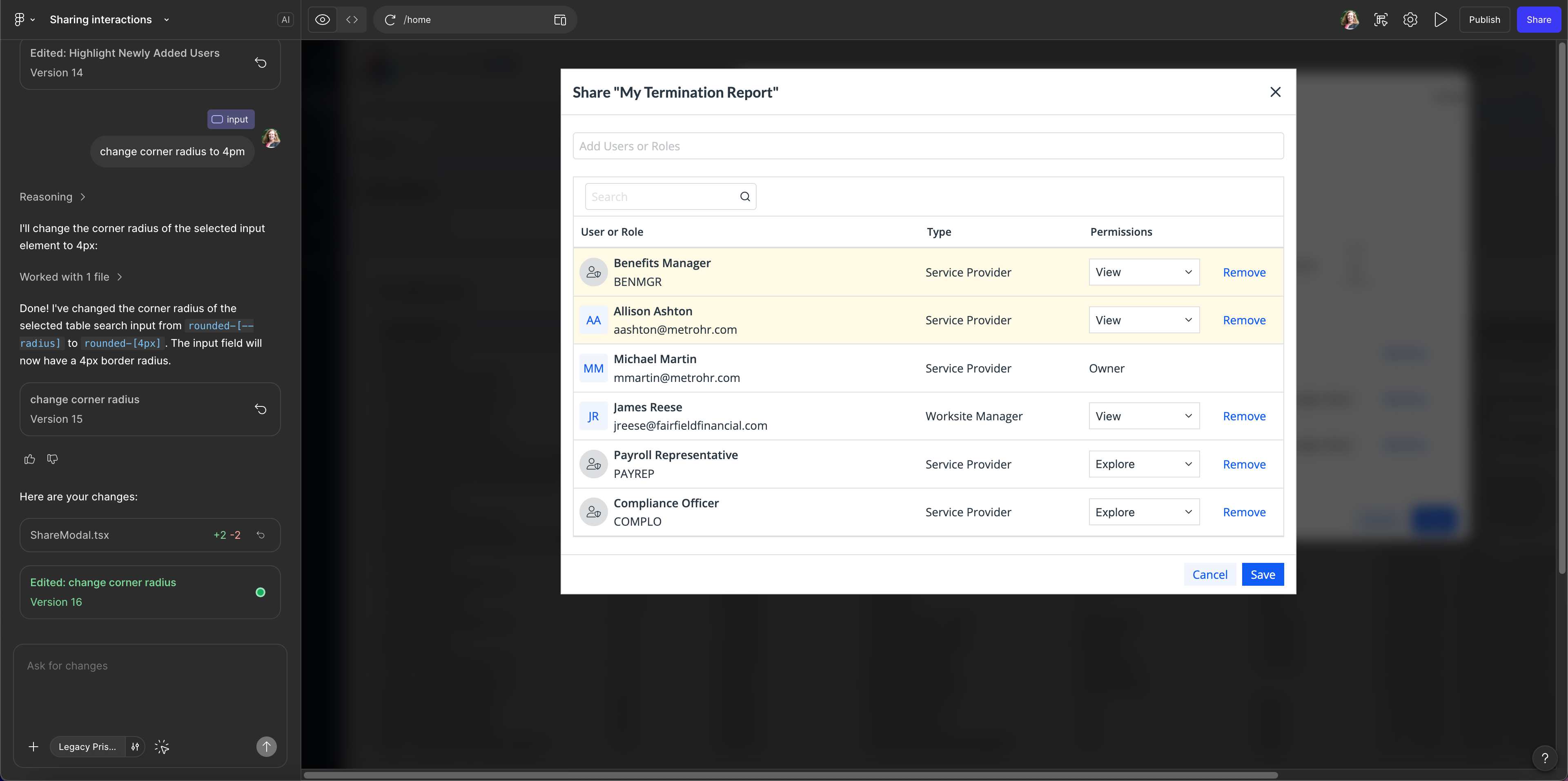 Recently I designed a new sharing dialog for Report Center. The interactions were important, and I was hitting the limits of functionality and maintainability with standard Figma prototypes. I used Figma Make to create a prototype that was fully interactive and functional.