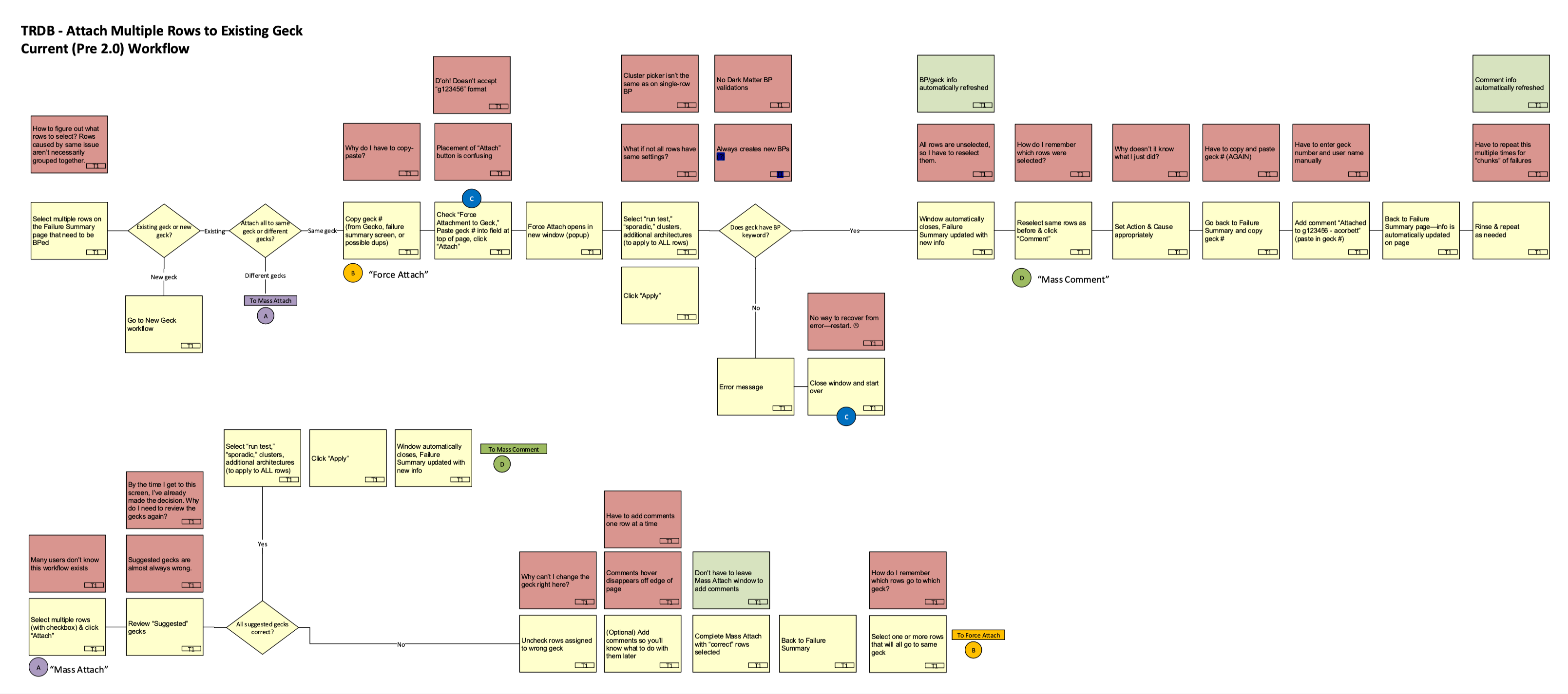 The workflow mapping helped us significantly reduce the number of steps in key workflows. For example, the workflow above went from 12 steps to 3 for the most common use case: a reduction of three quarters! Users had to go through each of these workflows many times a day, so this significantly reduced overall failure investigation time.